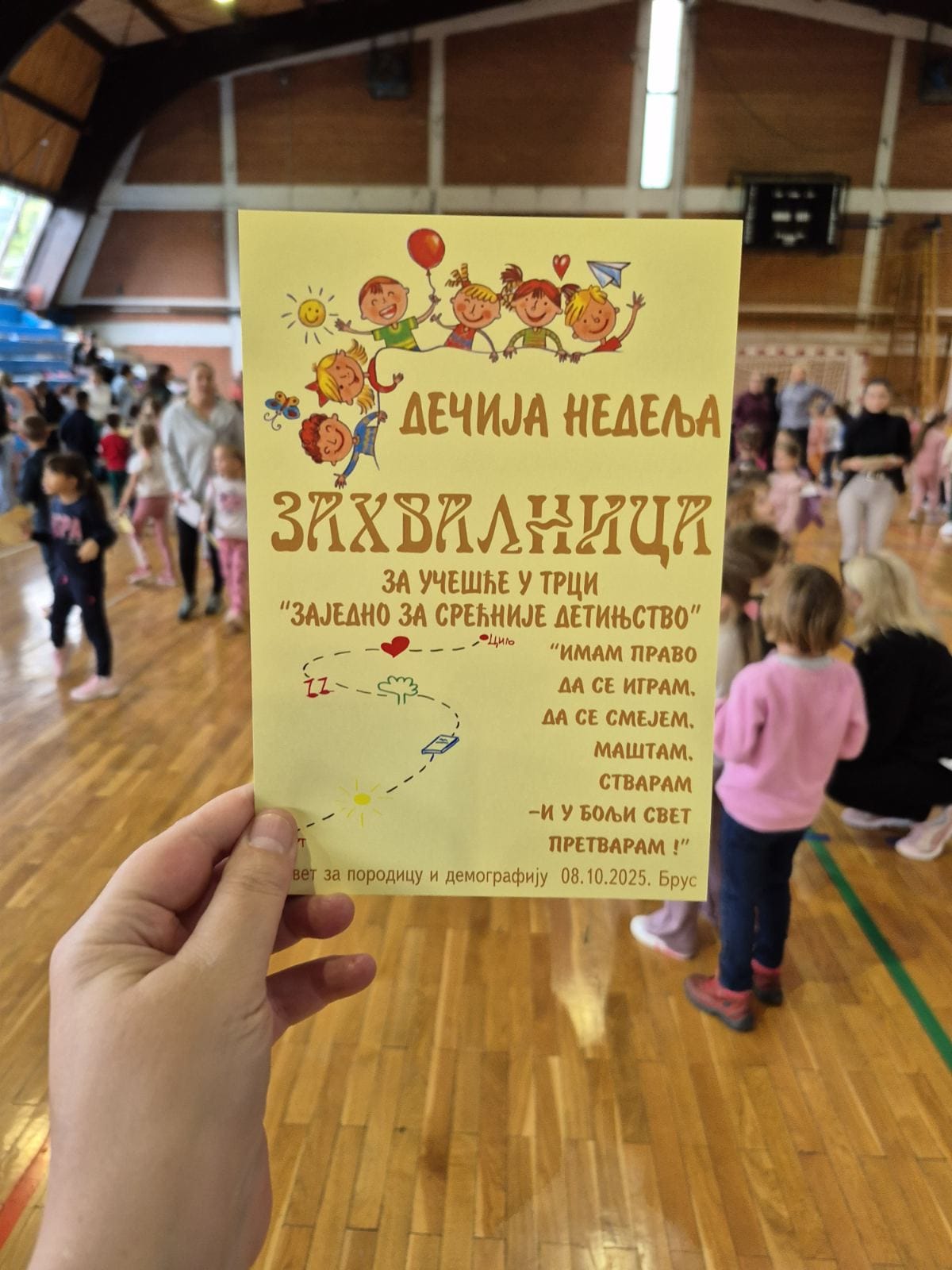 Заједно за срећније детињство је игра која их је окупила заједно на једном месту, месту игре, осмеха и доброг расположења у организацији Савета за породицу и демографију уз учешће установа: